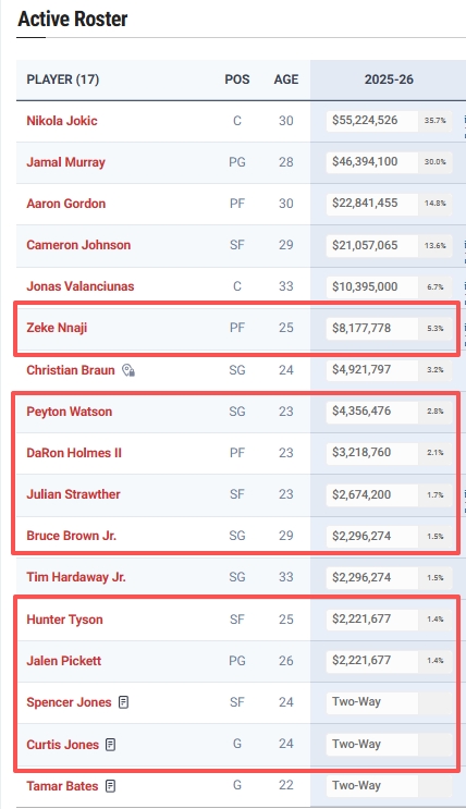 纳吉本赛季的薪资为818万,是本场比赛掘金队球员中薪资最高的。